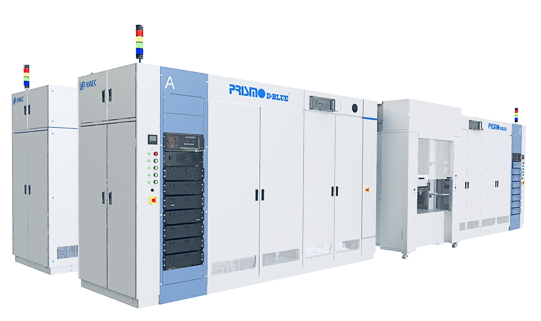 中微具有自主知識產權的MOCVD設備可配置多達4個反應腔,可以同時加工232片2英寸晶片或56片4英寸晶片,工藝能力還能延展到生長6英寸和8英寸外延晶片。每個反應腔都可以獨立控制,這一設計可以實現(xiàn)優(yōu)異的生產靈活性。PRISMO D-BLUE?是首臺被主流LED生產線采用并進行大批量LED和功率器件外延片生產的國產MOCVD設備。